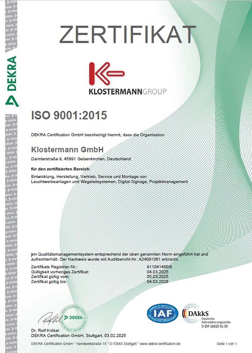 Als mittelständisches, inhabergeführtes Unternehmen mit mehr als 200 Mitarbeitern gehört die Klostermann Gruppe zu den großen Lichtwerbeunternehmen in Deutschland. Zusammen mit Kooperationspartnern können auch internationale Projekte abgewickelt werden.