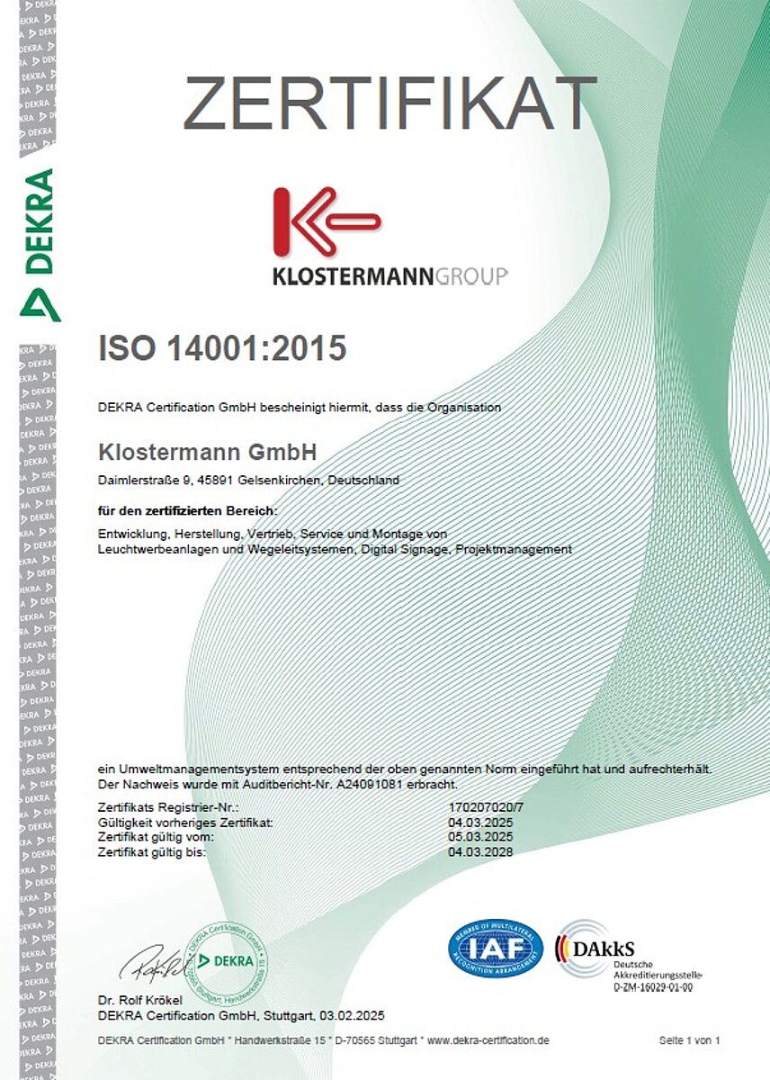 Die KLOSTERMANN GmbH ist die eigentliche Betriebsgesellschaft als Hersteller von Leuchtwerbung und Wegeleitsystemen. Die wesentlichen Abteilungen umfassen