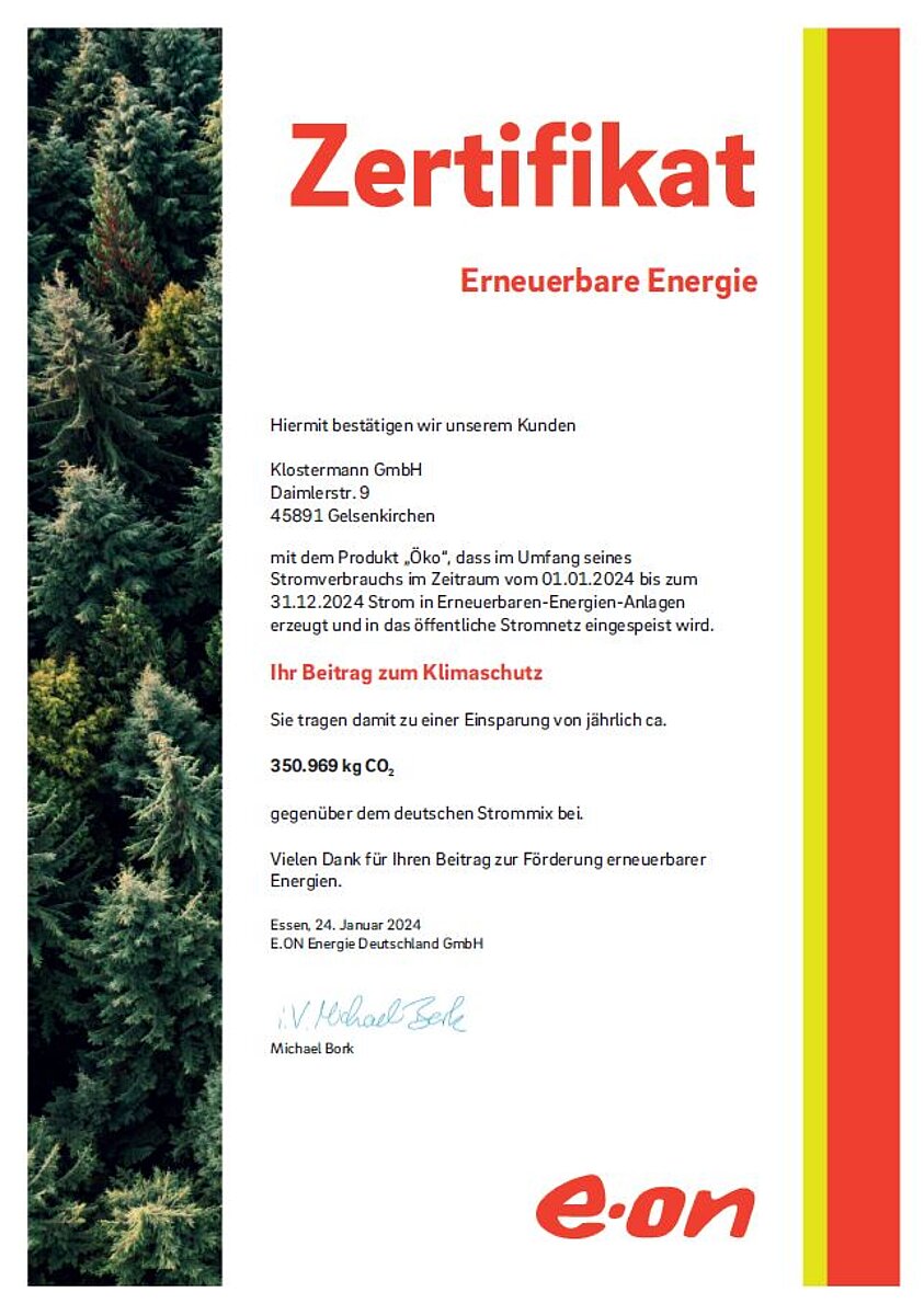 Auch 2025 nutzen wir ausschließlich Strom aus erneuerbaren Energien. 100% ÖKOSTROM ist unser Beitrag für den Klimaschutz durch Einsparung von über 350 Tonnen CO2 pro Jahr.